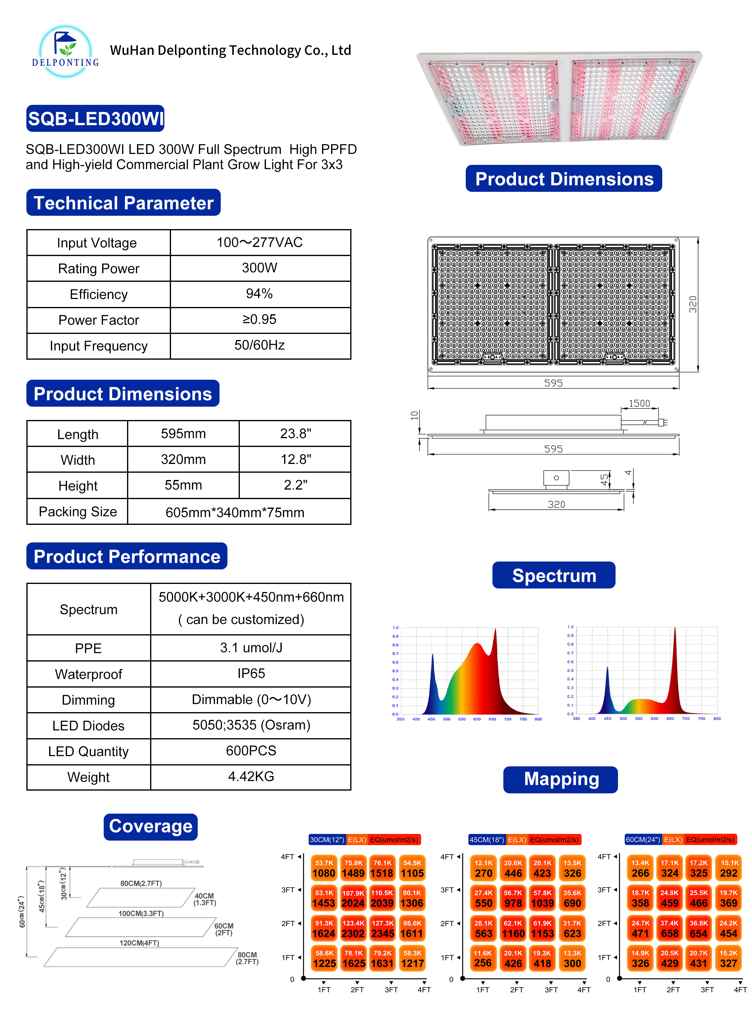Spectrum: full specrum(white) + 660nm